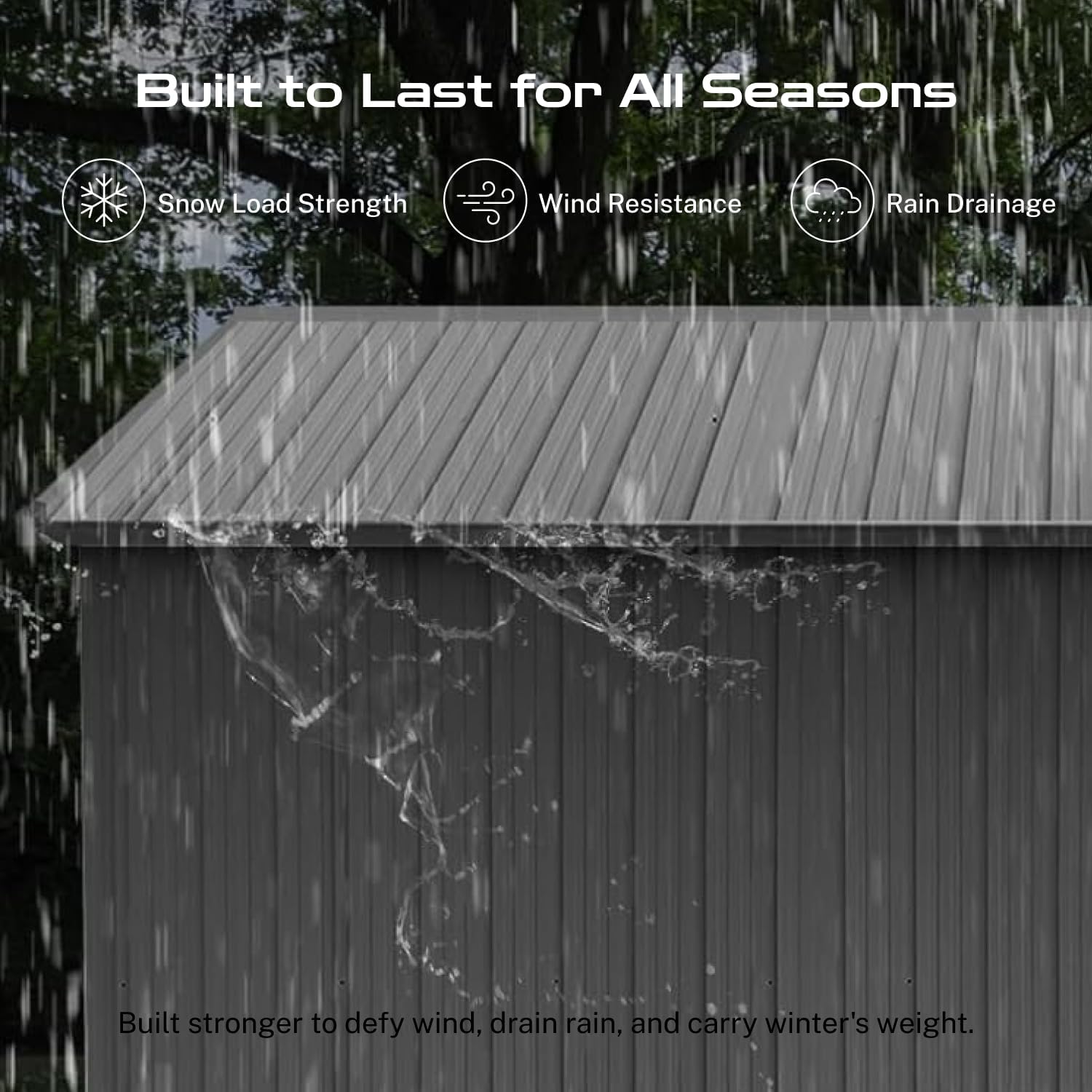 - 🏠 [Durable All-Metal Construction] Engineered for lasting performance, this robust metal storage shed is crafted from premium. The heavy-duty steel panels and reinforced frame create a reliable storage house built to withstand harsh weather, seasons, and frequent use, ensuring your casita de patio remains a sturdy sanctuary for years