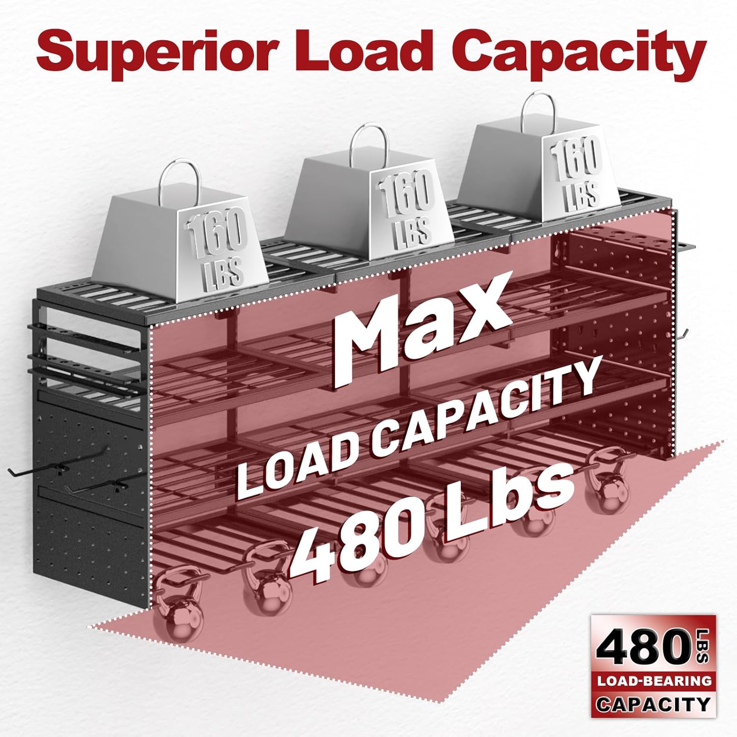 - Versatile Side Pegboards:The side-mounted pegboard provides extra space for hanging smaller tools and accessories for DIY customization to increase storage space, enhancing organization and keeping frequently used items within arm's reach