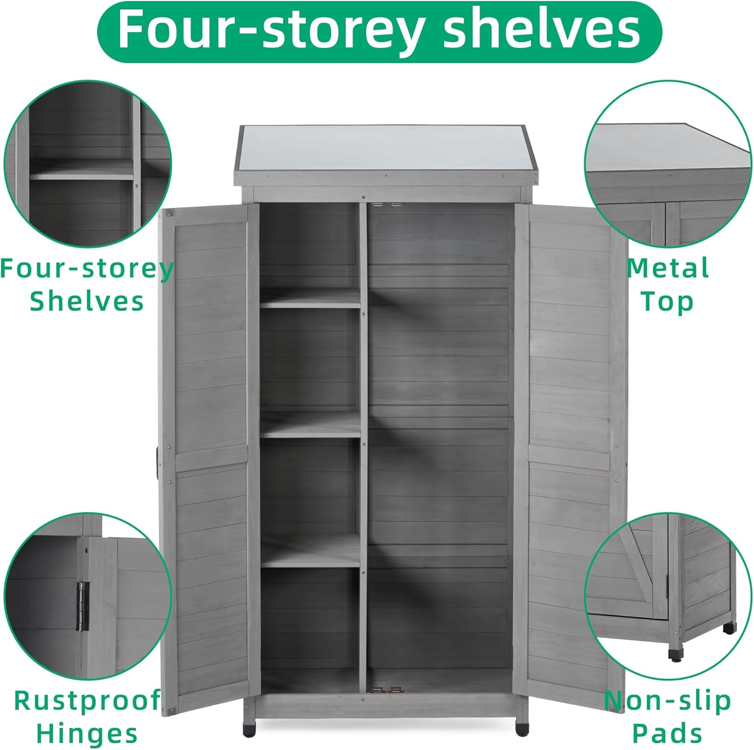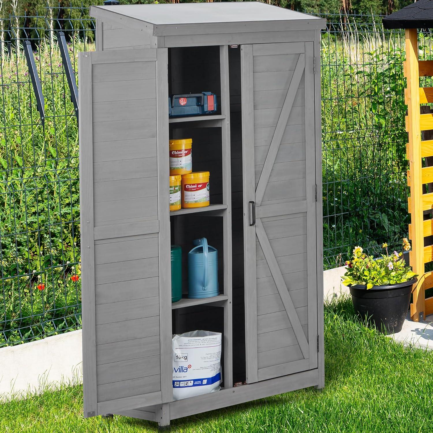 - Spacious Storage Capacity: With ample room for all your gardening essentials, including potted plants, gloves, and watering cans, our outdoor storage shed maximizes organization and efficiency in your outdoor area.