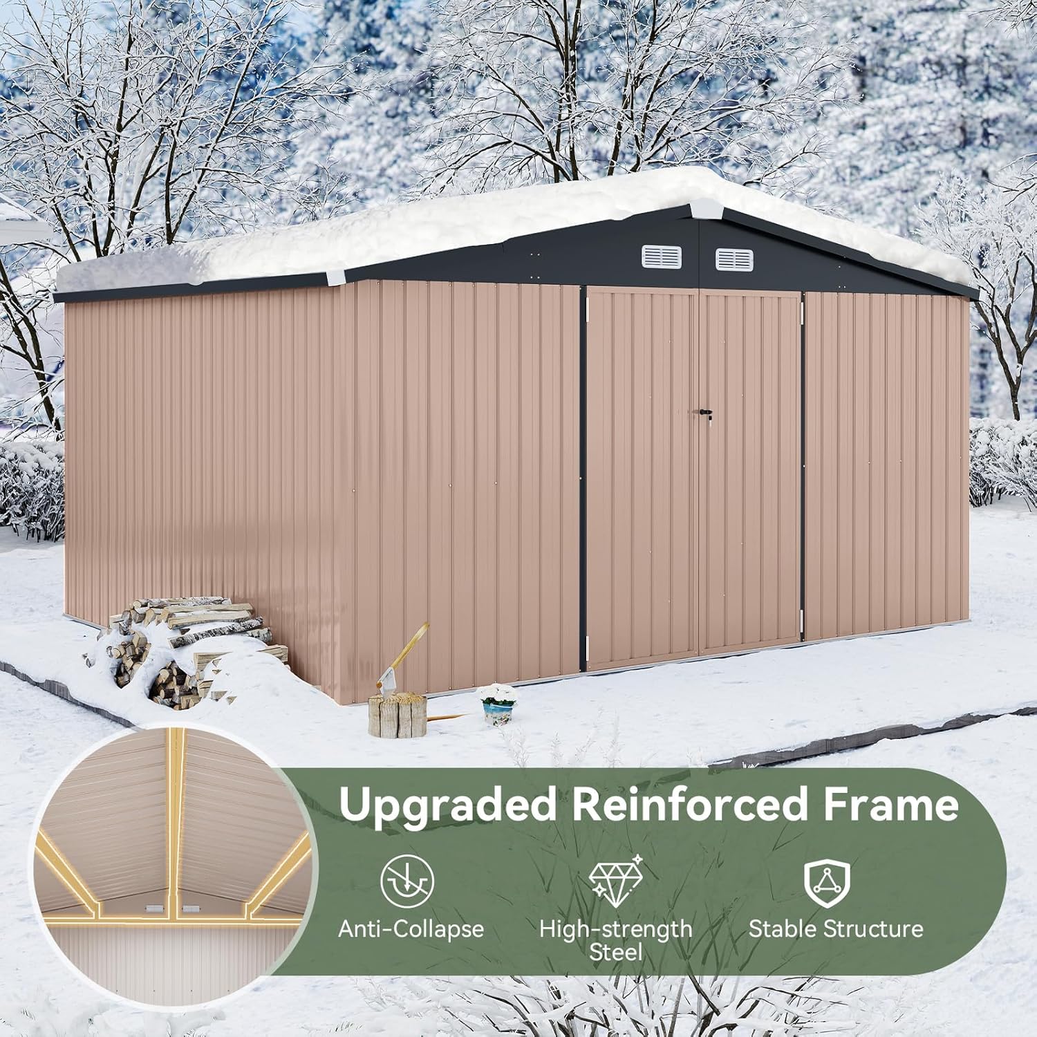 - Premium Durability and Unmatched Weather Resistance: Constructed from high - quality galvanized steel, our tool storage shed is completely waterproof and engineered to withstand the toughest weather conditions, ensuring long - term reliable performance. With a sturdy metal roof and walls, it retains its shape and structural integrity, capable of enduring winds of up to 30 mph (Maximum wind resistance rating: 6) and snow accumulations of up to 6 inches.