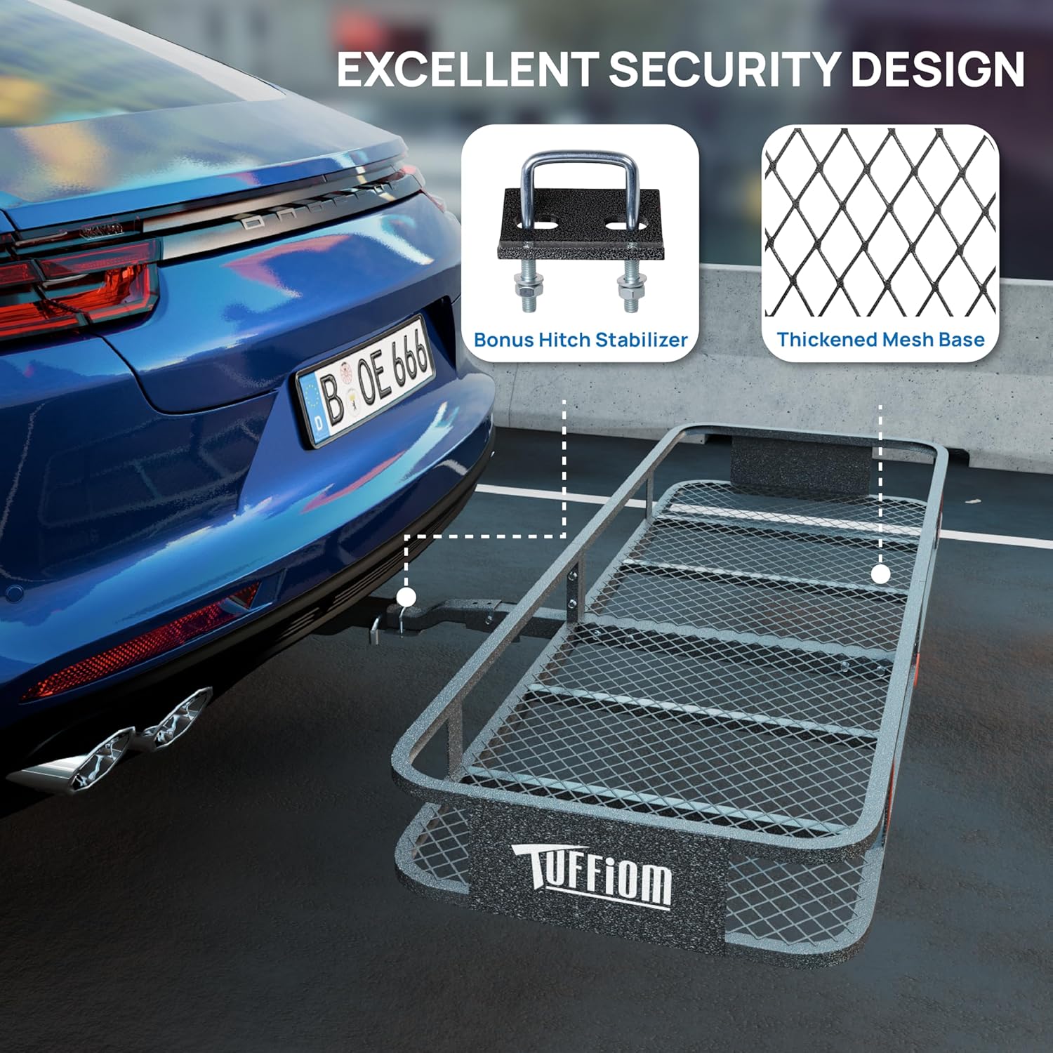 - 【Security Design】Equipped with bonus hitch stabilizer and thickened mesh base, reducing noise and movement during driving.