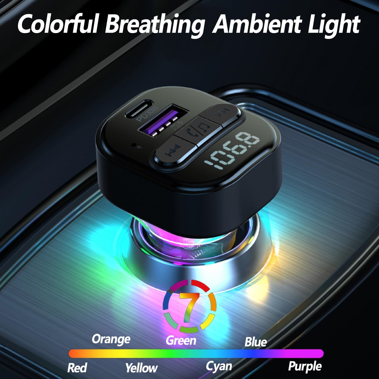 - Type-C PD(30W) and USB Car Charger: The bluetooth car adapter is equipped with Type-C PD(30W) and USB charging ports, which can provide faster speed than normal port. You can simultaneously charge 2 compatible devices.