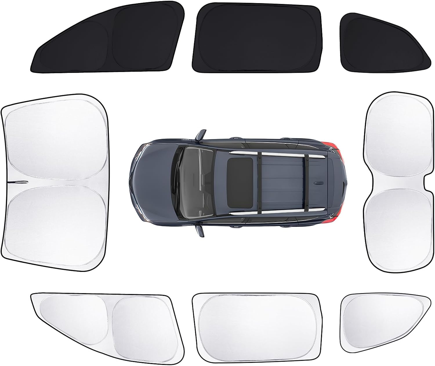 - All-new upgrade: Each sun visor is covered with a silver metal aluminum layer on the outside and black on the inside. Compared with the all-black sun visor, the silver sun visor can better lower the temperature inside the car. Meanwhile, when you need to use the black sun visor, just flip it over for use