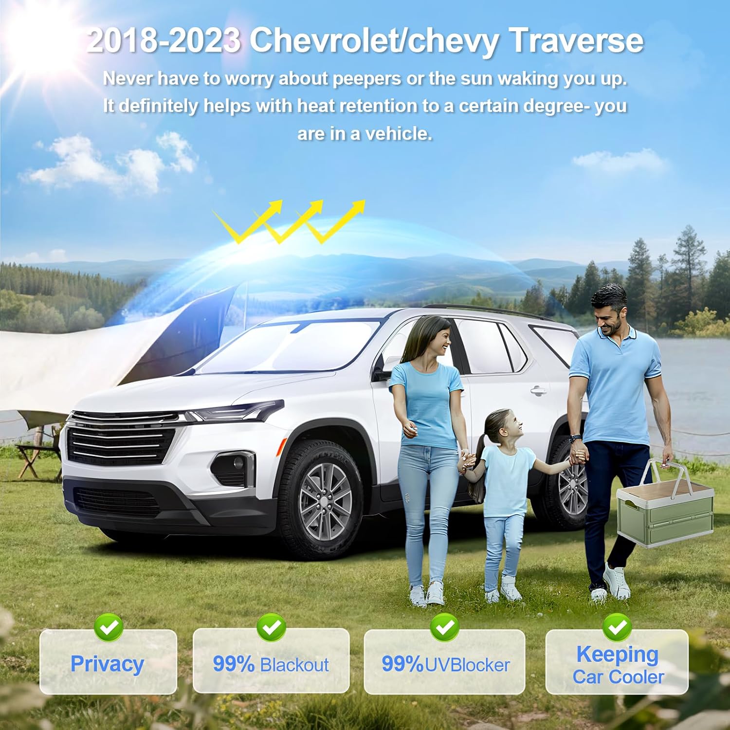 - Designed specifically:SHINELINERS full window sunshade is specially designed for Traverse 2018 2019 2020 2021 2022 2023.Provide your car with comprehensive UV and infrared protection, not only keeping the interior cool in hot weather but also extending the lifespan of the car's interior