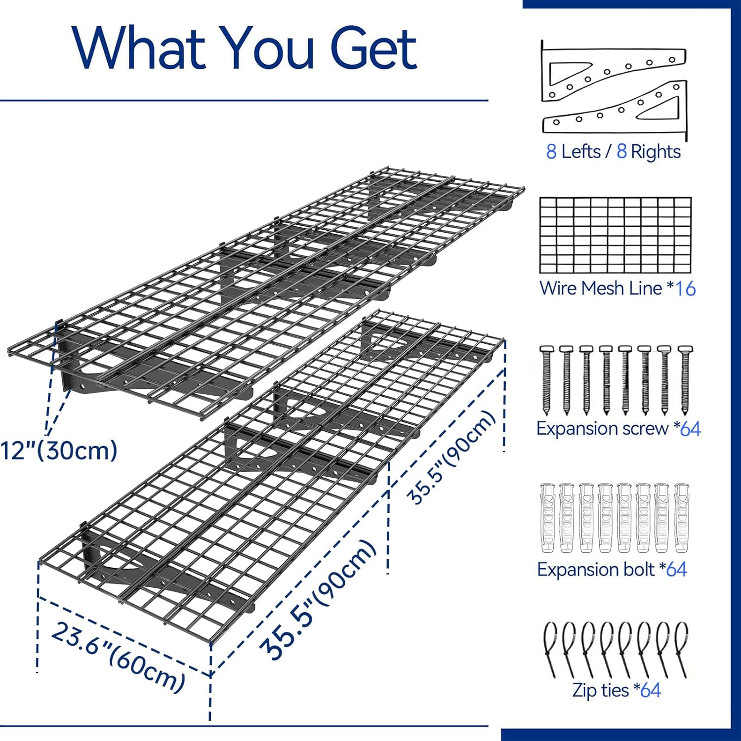 4Pack 2x6ft Garage Shelving Wall Mounted, 2400 Lbs Heavy Duty Garage Wall Shelving Storage Shelves for Basement, Laundry Room, Heavy Duty Floating Shelves Holds Up to(Black), 70.86" x 23.6"
