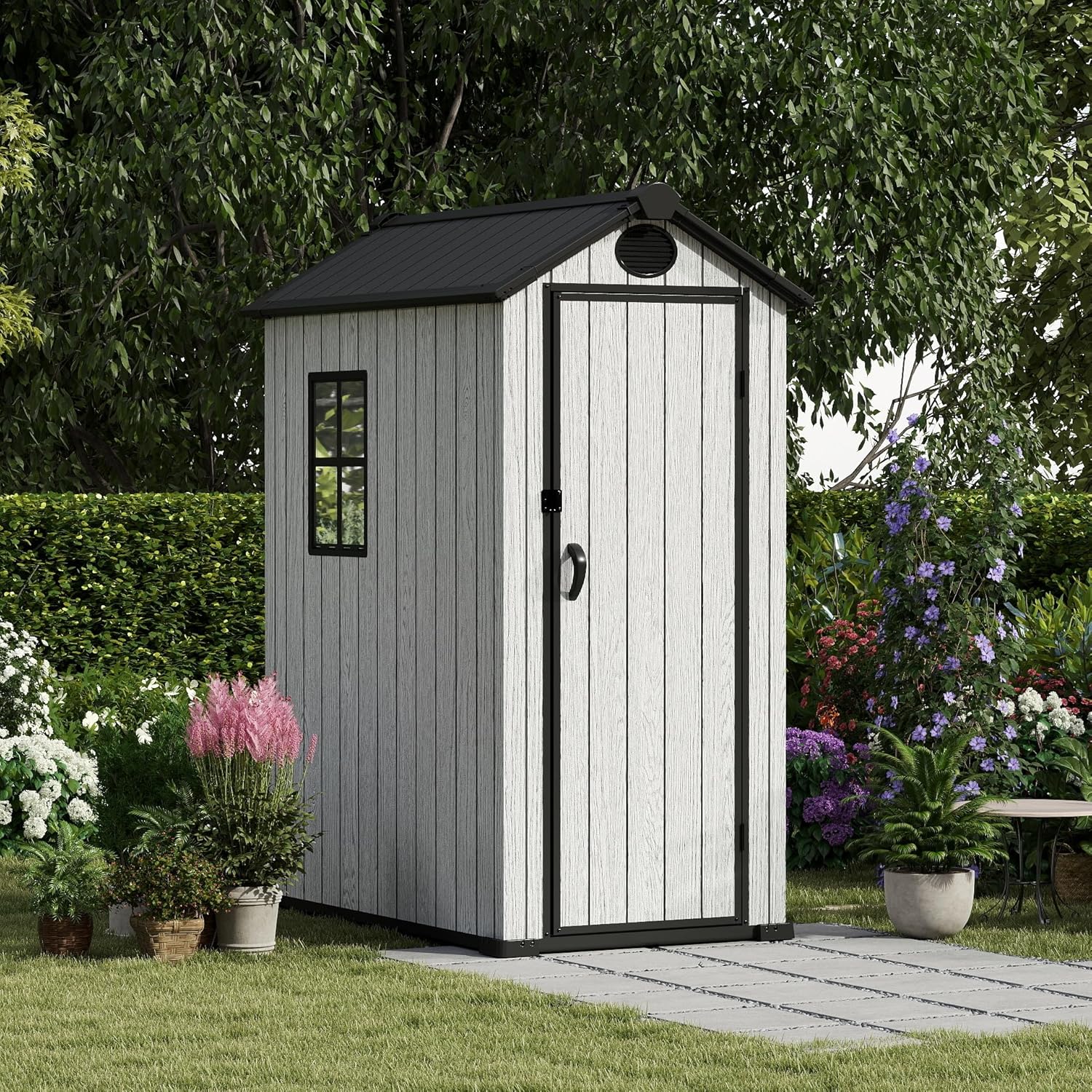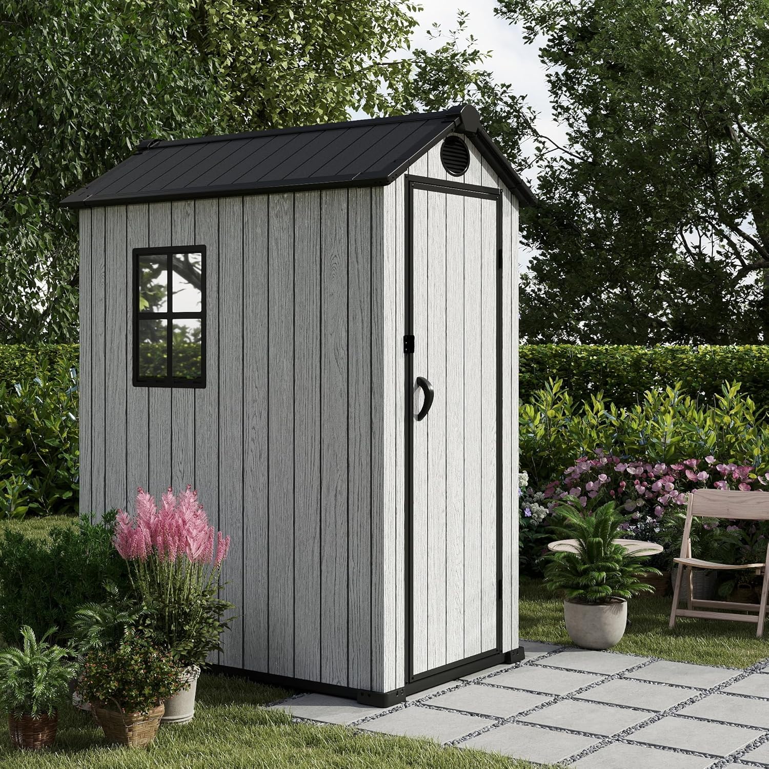 3.4x5.3 FT Resin Outdoor Storage Shed, 125 Cuft Garden Tool Sheds & Outdoor Storage Plastic Shed with Floor, 7FT Tall Backyard Outside Lawn Mower Storage Shed with Side Window, Cemented Grey