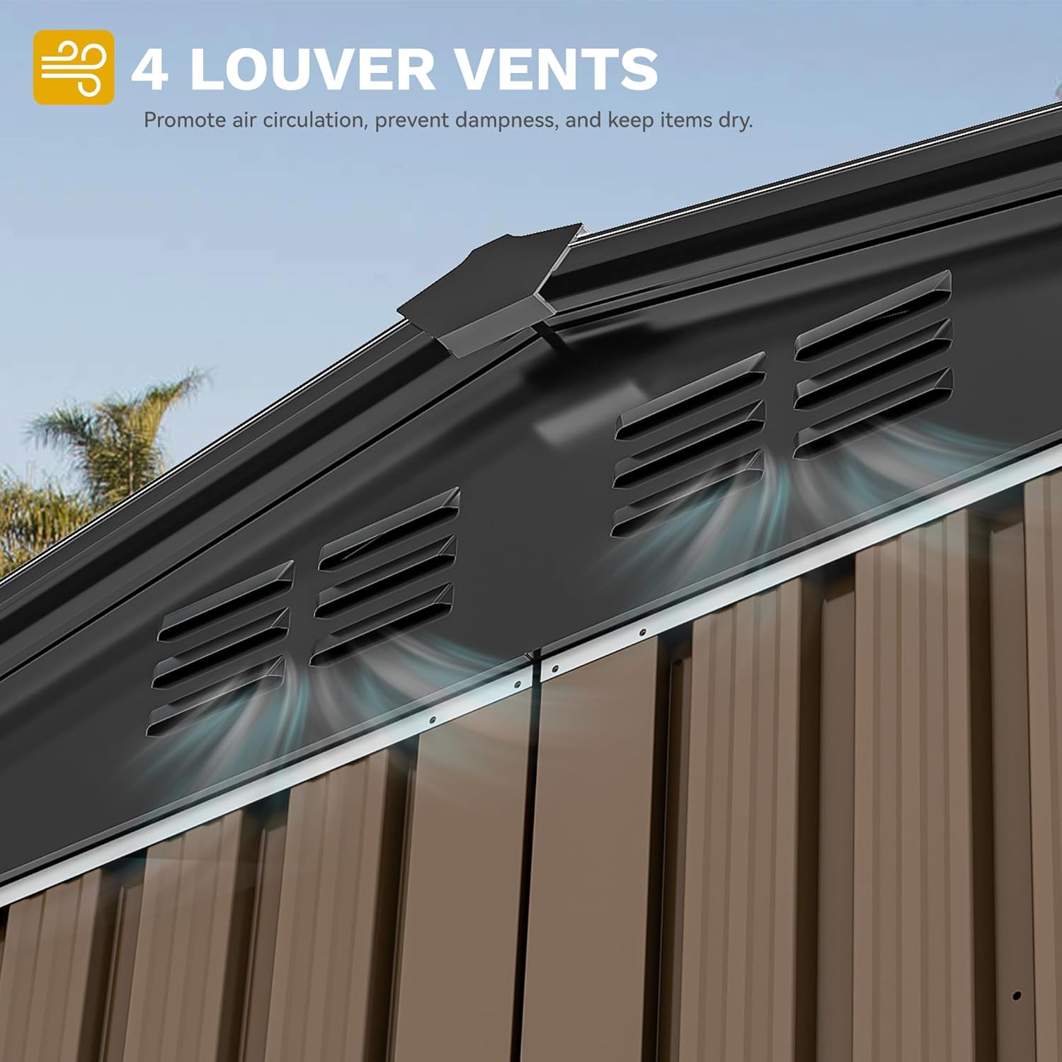 DWVO 8'x6' Large Metal Outdoor Storage Shed, Heavy Duty Tool Storage Sheds for Backyard Patio Lawn - Ideal for Bicycles, Garden Tools, and Lawn Equipment, Easy-to-Assemble, Brown