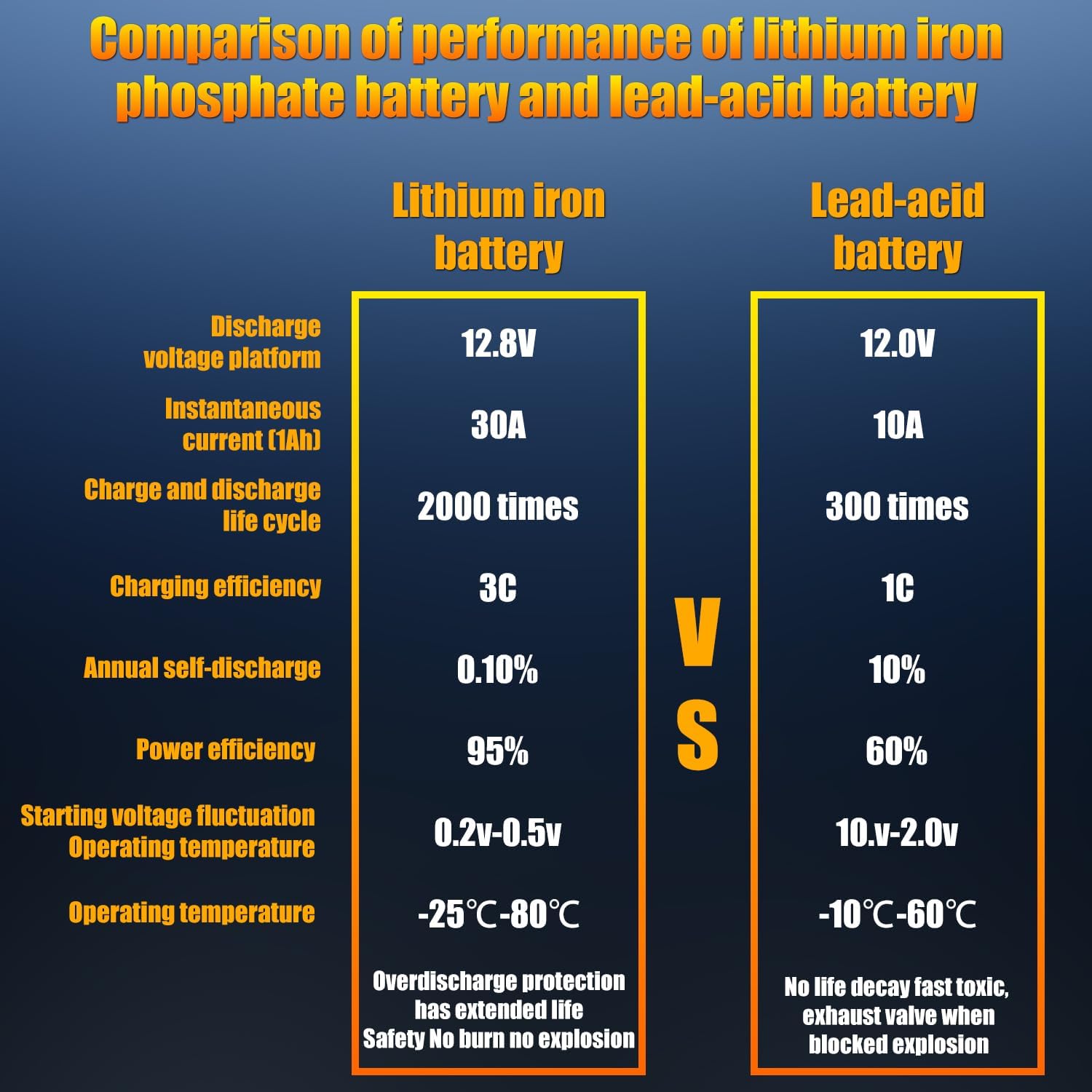 - Upgraded LiFePO4 Performance: Offering lightweight design and superior efficiency in both charging and discharging, this battery is the perfect choice for replacing or upgrading your car’s power source. Upgrading to lithium can reduce fuel consumption by up to 20%, providing both economic and environmental benefits