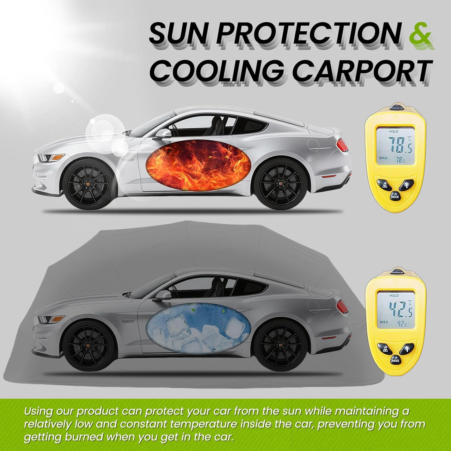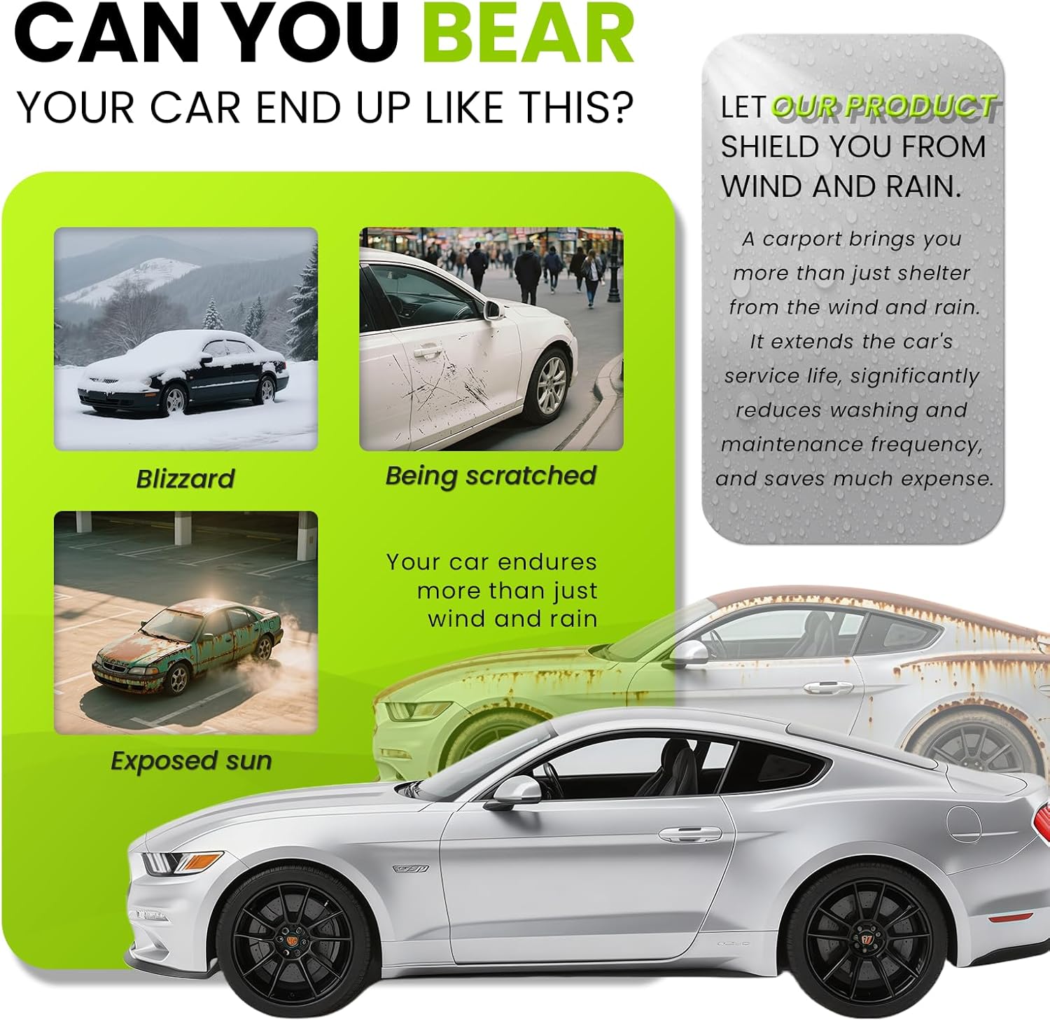- Stainless Steel Carport: This heavy-duty stainless steel frame protects your car from extreme weather conditions, extending its lifespan while significantly reducing car washes and maintenance, saving significant costs.