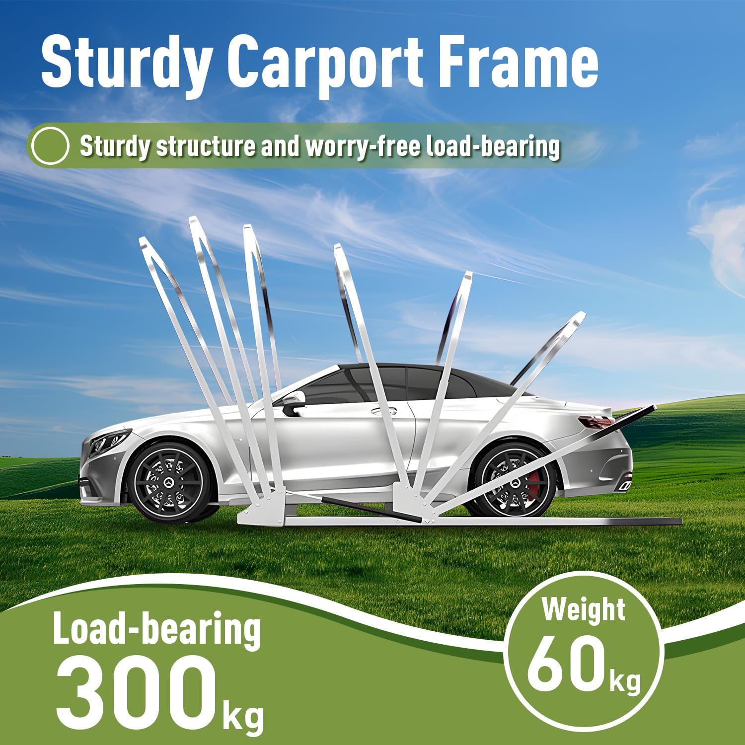 - Sturdy & Durable : The heavy-duty carport measures 18 feet long (about 5.5 meters) Ă— 8.2 feet wide (about 2.5 meters) Ă— 7.5 feet high (about 2.3 meters), which can easily accommodate small and medium-sized cars such as sedans. It can support up to 300 kg and remains stable on all surfaces and is suitable for cement, mud, marble and other floors