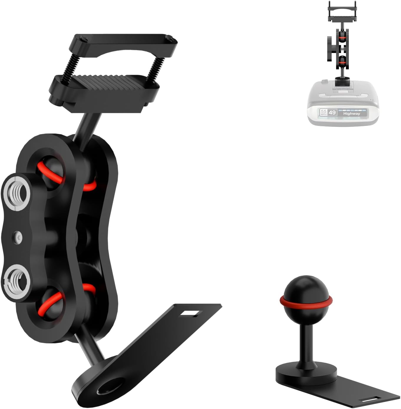 - Strong Expandability-Radar Detector Mount has strong expandability and can be connected to any 0.63 inch diameter rotating ball adapter at the ball head. The handle is equipped with a 1/4 interchangeable 3/8 adapter screw for easy expansion of different devices