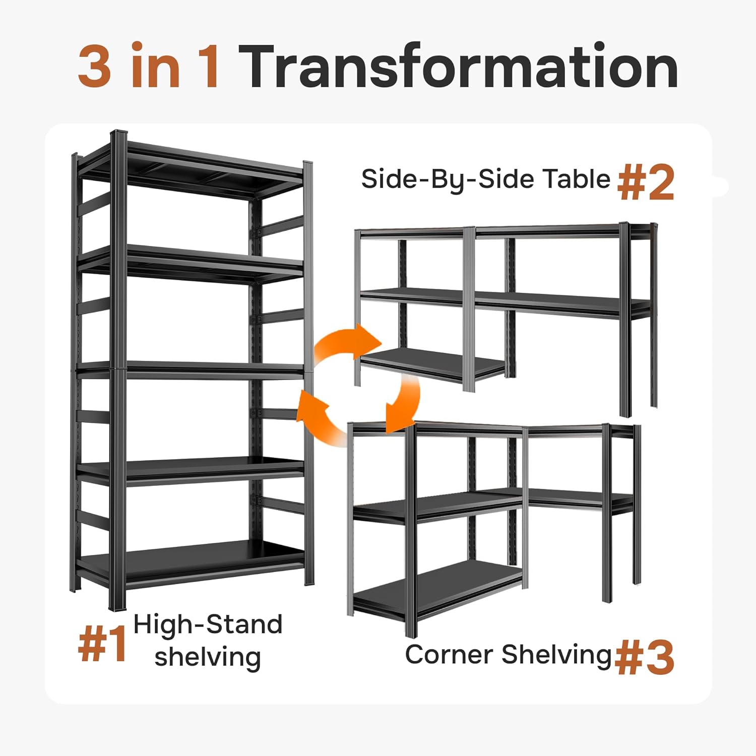 - đ VERSATILE 2-IN-1 MODULAR DESIGN â Get two units for the price of one! Use it as a single, towering 88" tall shelving unit to maximize vertical space. Or, in just a few seconds, split it into two independent, workbench-height 44" racks. This incredible flexibility makes it the ultimate solution for any space: your garage, warehouse, pantry, kitchen, or even as a retail display. It adapts to your needs, not the other way around.