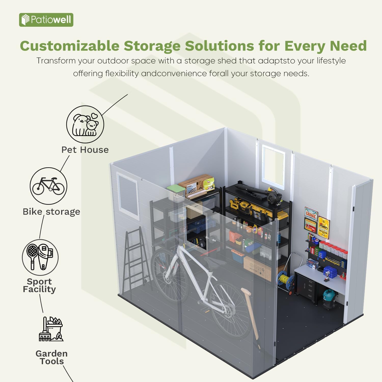 Patiowell 6x8 FT Outdoor Storage Shed with Floor - Resin Tool Shed with Lockable Door & 2 Windows, Easy Assembly for Garden, Backyard, Lawn Equipment, Light Gray