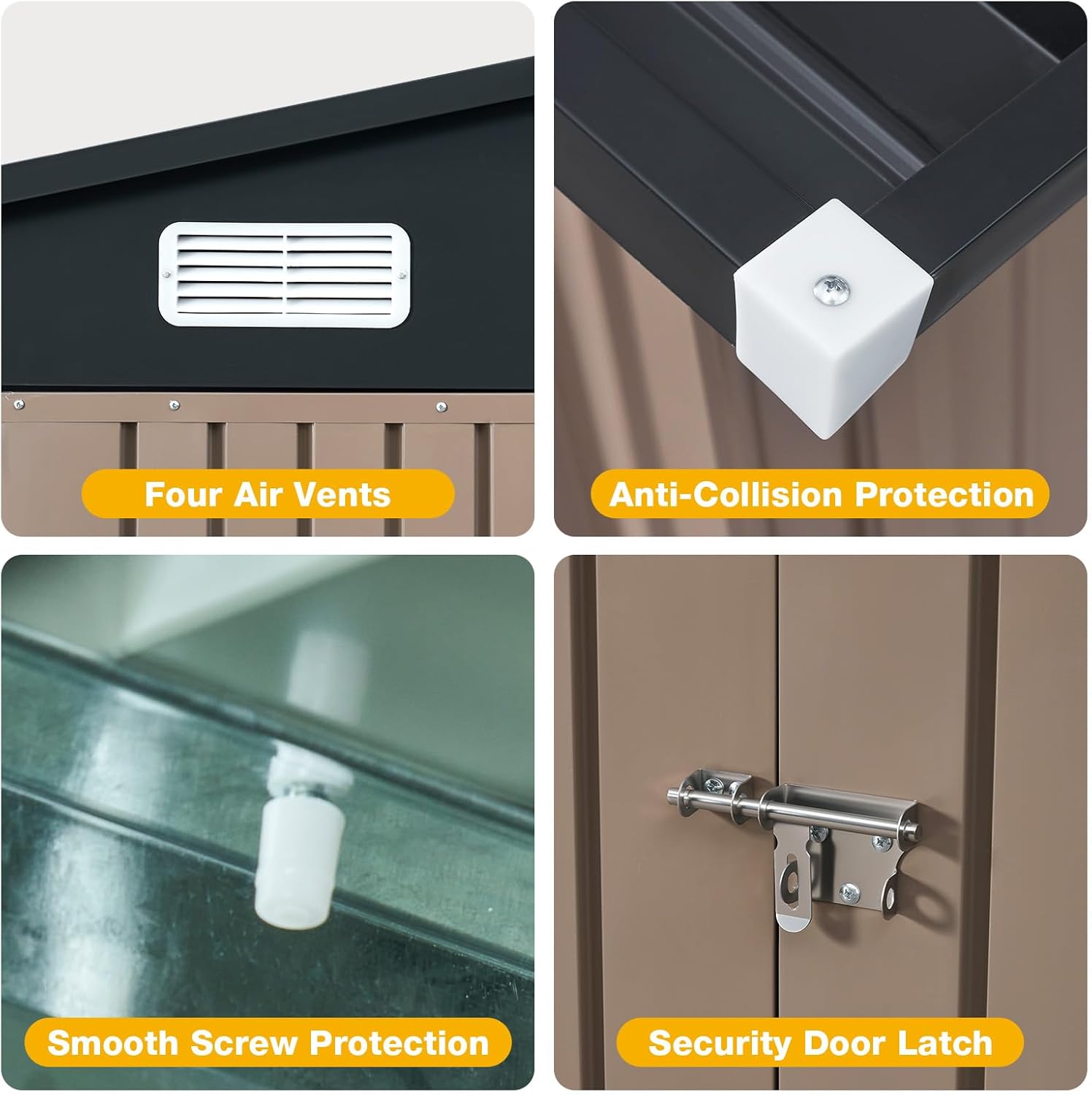 - Lockable Double Doors & Sloped Roof Design: Secure your valuables with padlock-ready double doors (lock not included), while the sloped roof prevents rainwater pooling and increases snow load capacity up to 6 inches. Built-in ventilation vents reduce condensation, keeping items dry in any season, perfect for use as a secure outdoor storage cabinet or garden shed.