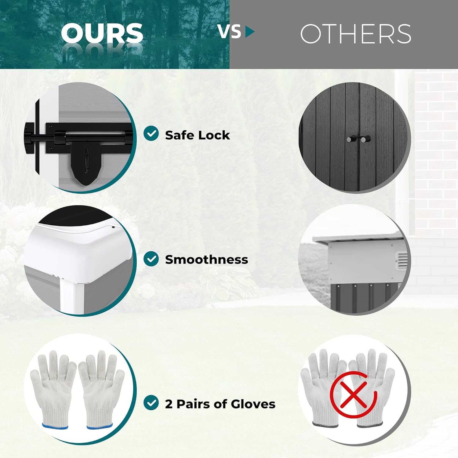 - đ ăEnhanced Security FeaturesăThe lockable door (padlock compatible) ensures your belongings are protected from unauthorized access. Whether used as a tool shed, bike shed, or for general outdoor storage, this shed offers reliable security and peace of mind for both suburban and rural environments