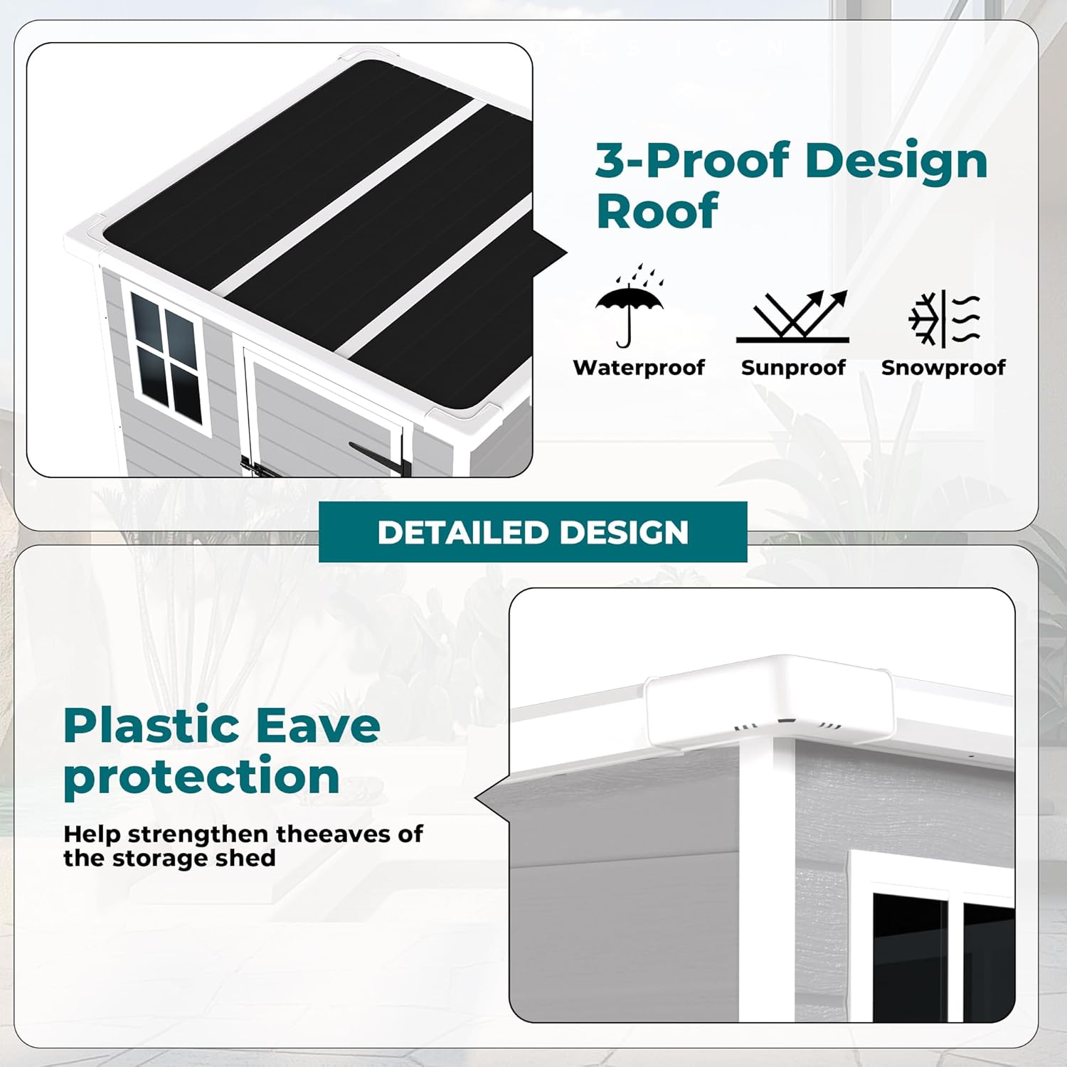 - đ ăAll-Weather Resin DurabilityăCrafted from high-quality plastic resin, this resin shed is built to handle rain, snow, and sunlight with ease. The waterproof and UV-resistant exterior helps protect your stored items all year long, while the reinforced double-wall panels add strength and thermal stability for lasting outdoor performance