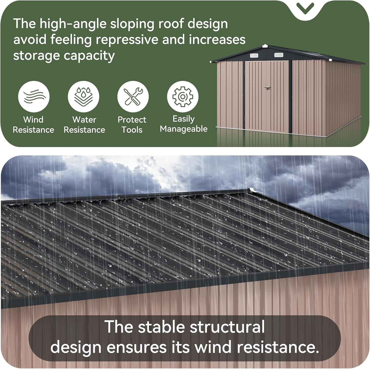 Aoxun 10 x 12FT Outdoor Storage Shed with Base Utility Garden Shed with Lockable Door & Sloped Roof Metal Sheds Outdoor Storage for Garden, Backyard, Patio and Backyard,(Brown/Base Included)