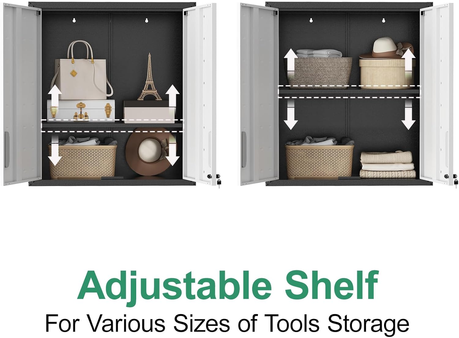 - Multi-scene Use: Wall cabinet is suitable for home, garage, warehouse, kitchen, tool room, especially for garage and tool room, for you to place tools and daily necessities to provide sufficient safe storage space, keep the room clean.