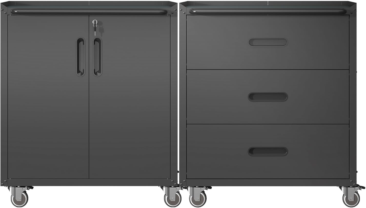 Metal Tool Cabinet,Garage Storage Cabinet System,Wall Cabinet & Locking Rolling Tool Cabinet with Doors and Adjustable Shelves,Steel Tool Cabinets for Home,Office (2 Pcs-StyleC, Black)