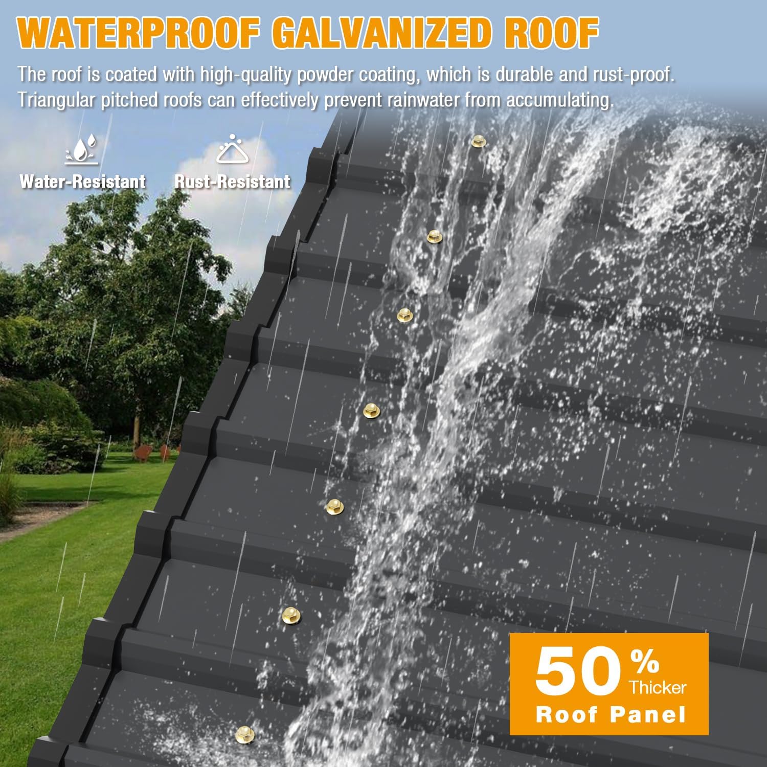- 【SUPER WEATHER RESISTANCE】Our outdoor metal carport features a galvanized steel frame and a high-strength metal roof, offering superior corrosion and weather resistance, making them a perfect match for the elements. The carport's sloped roof features high-density waterproof tape, ensuring excellent weatherproofing. Our garage car shelter shdae offer optimal protection, whatever the weather.