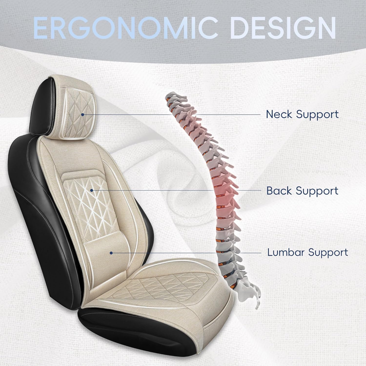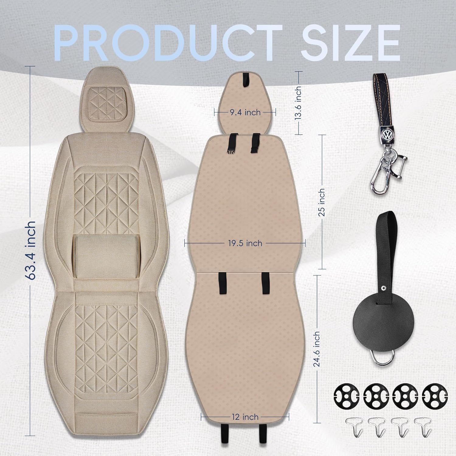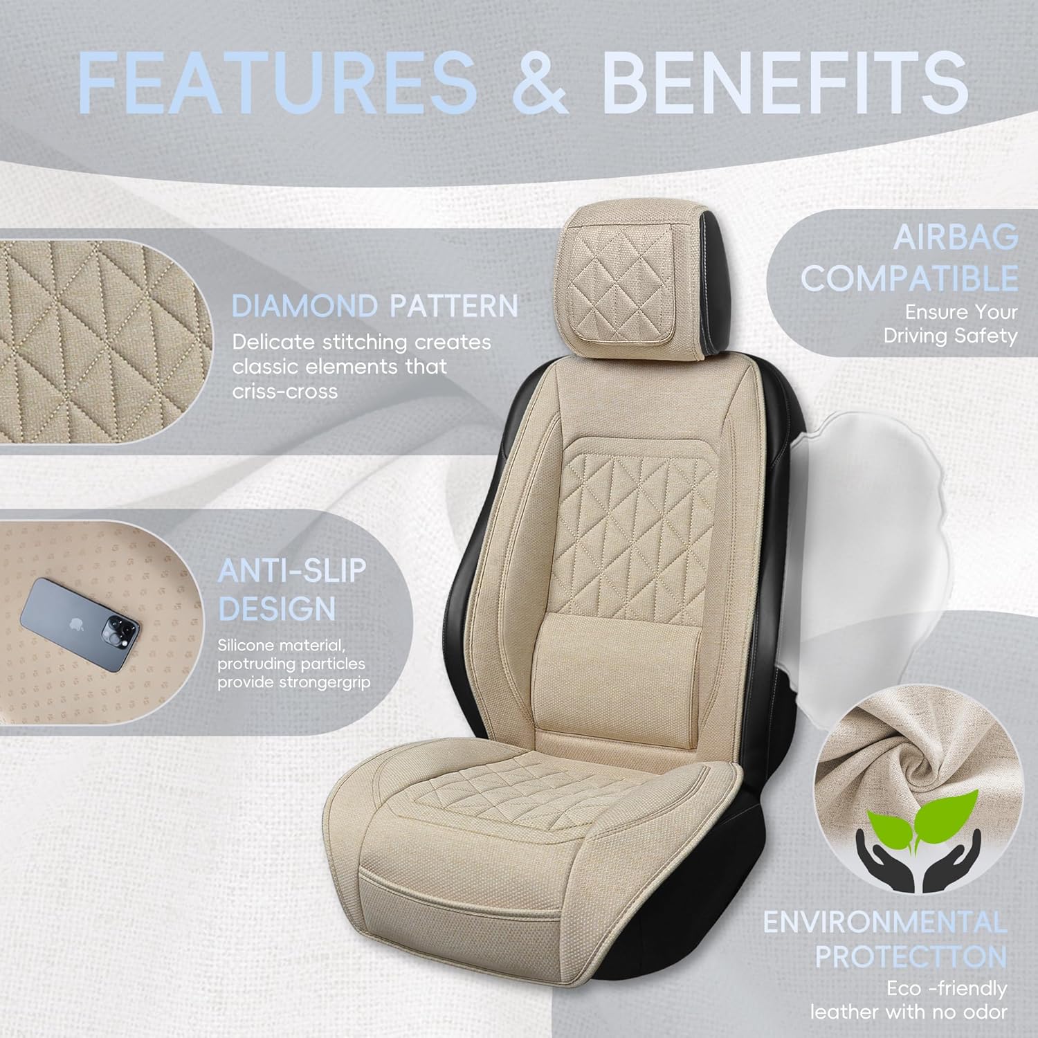 - Premium Automotive Seat Cover: Single front car seat cover made of ergonomic & durable faux linen fabric. Protects cloth or leather interiors from spills, dirt, and sweat.