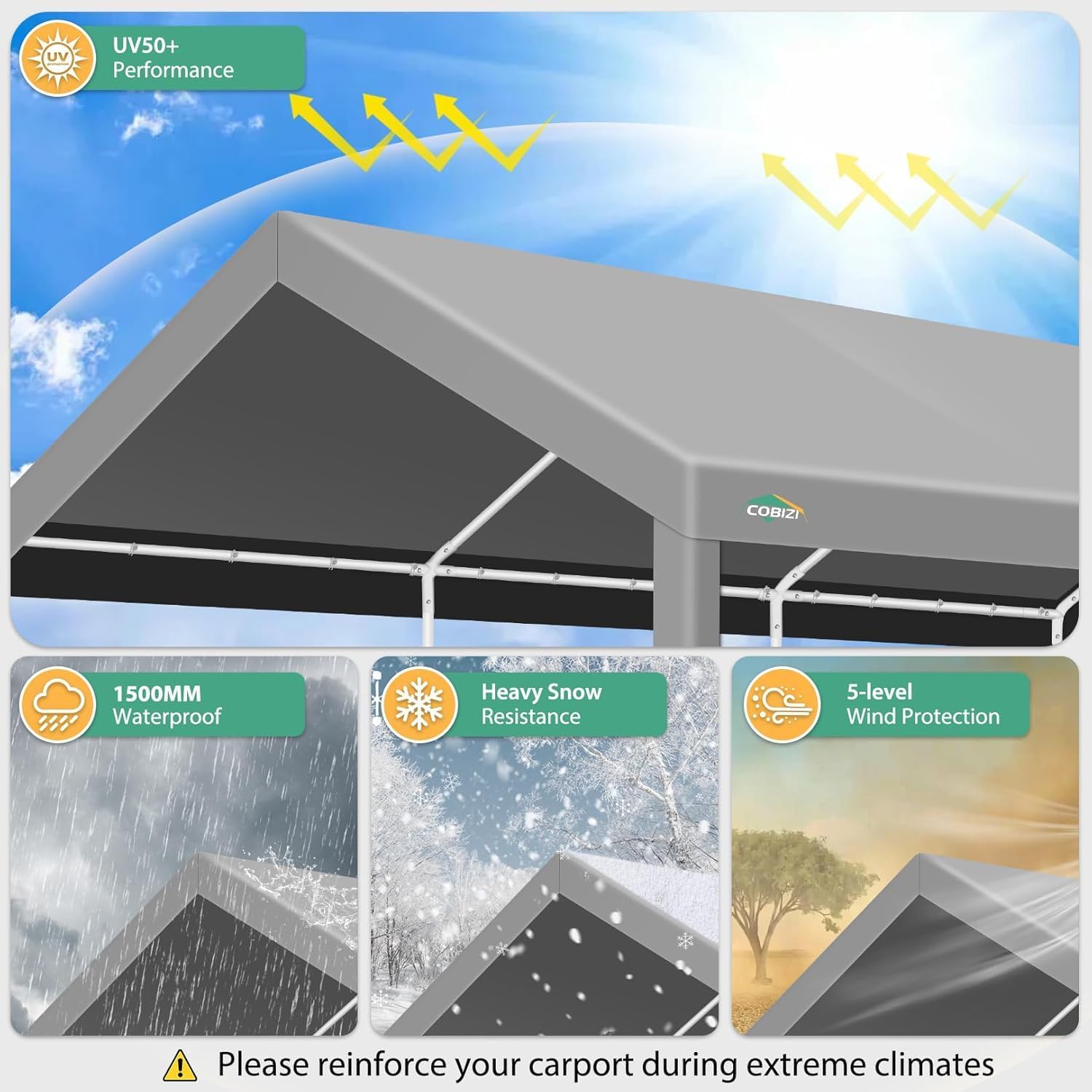 COBIZI Carport 12x20ft Heavy Duty Portable Garage, 2.0 Powder Coated Frame(Better Than Galvanized), Waterproof Shelter with Built-in Sandbags, for Car/Boat/SUV, Gray