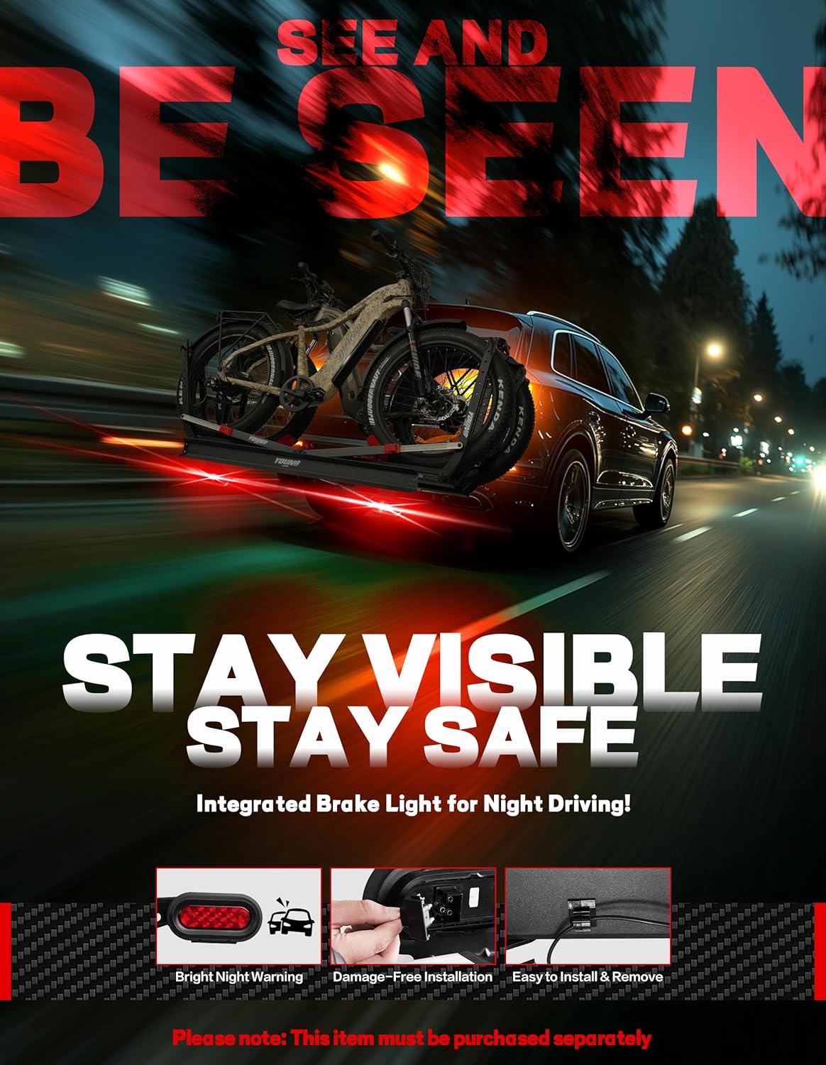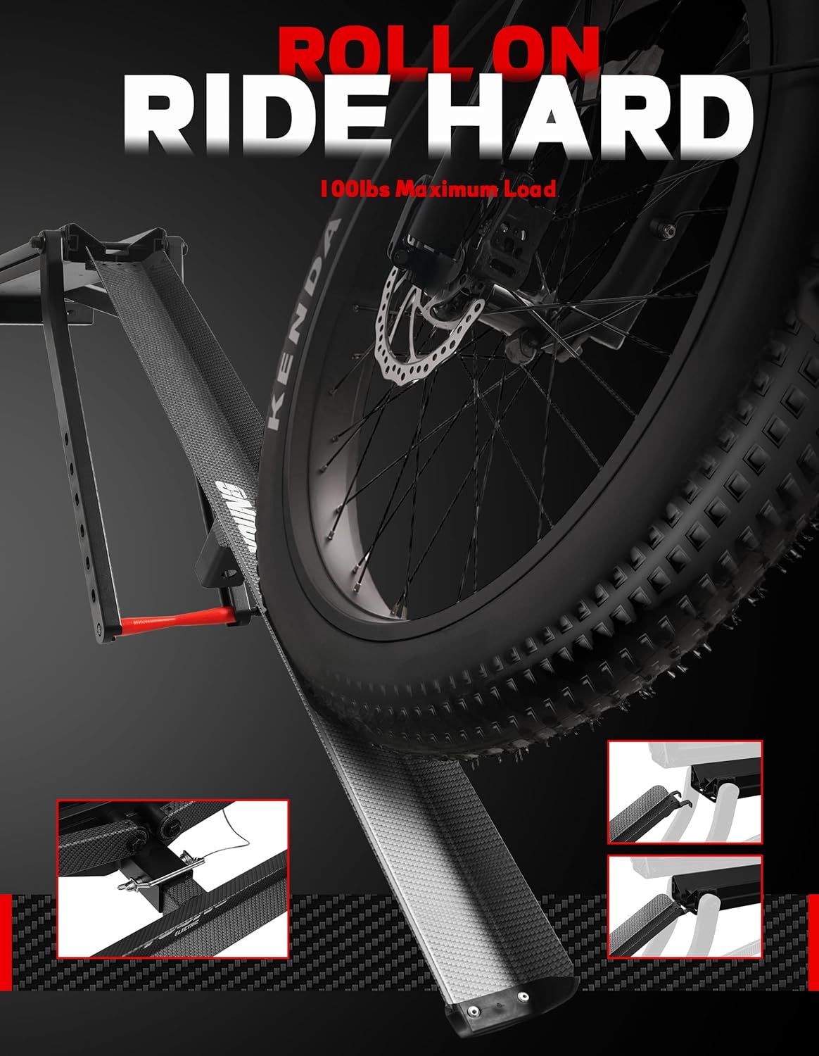 - ăIntegrated Ramp for Effortless Loadingă The included ramp makes mounting heavy ebikes and fat tire bikes quick and easy. No heavy lifting requiredâjust roll your bike onto the rack and secure. Great for frequent riders and long trips.
