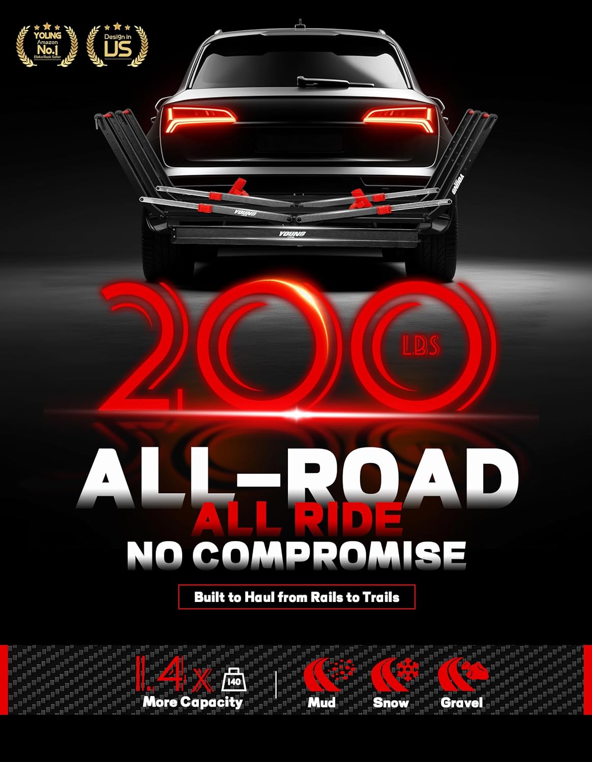 Young Heavy Duty Electric Bike Rack for Car SUV Truck RV, 2 Bike Hitch Mount Platform with Ramp, Fits Fat Tire up to 5", Foldable Ebike Carrier for Tow Hitch 2" Receiver, Scratch-Free, Quick Install