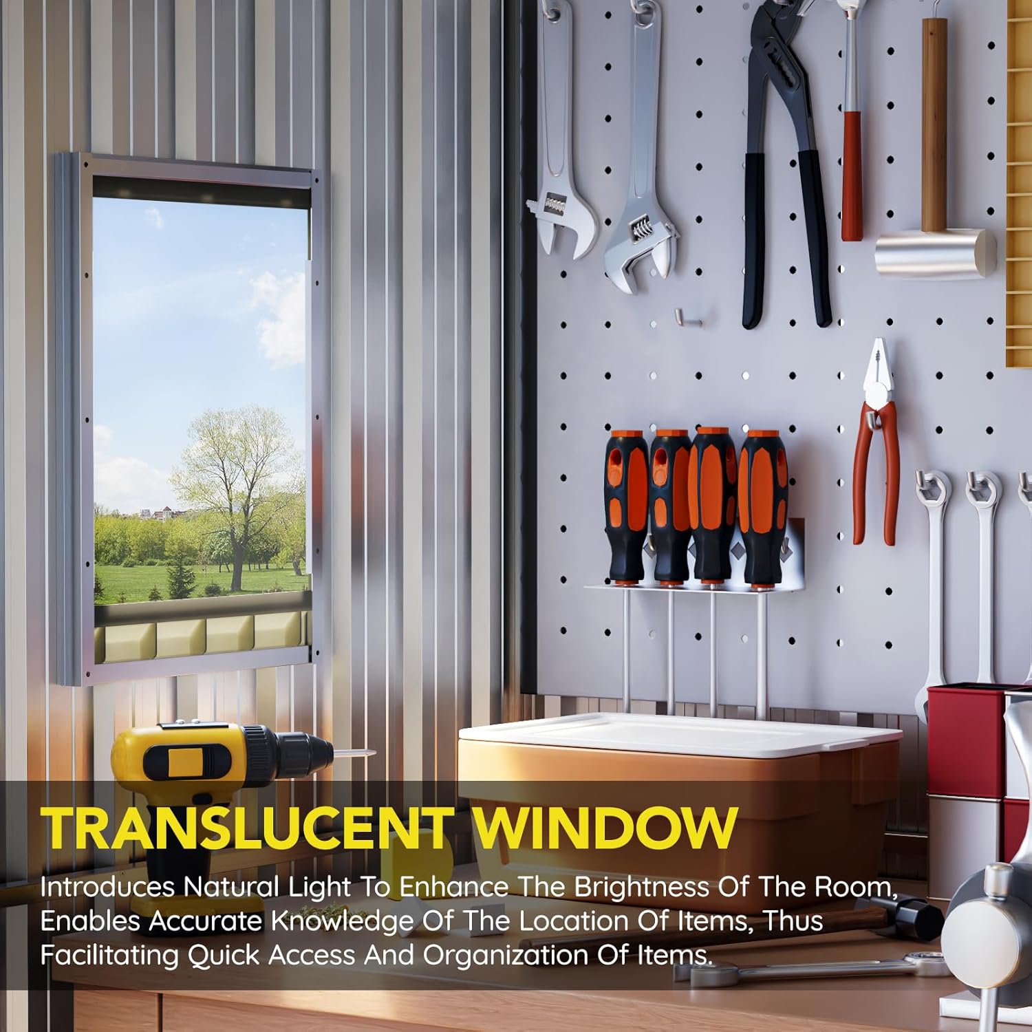 - Heavy-Duty Galvanized Steel Panels – Weather-resistant material protects against rust, corrosion, and UV damage, ensuring long-term use.