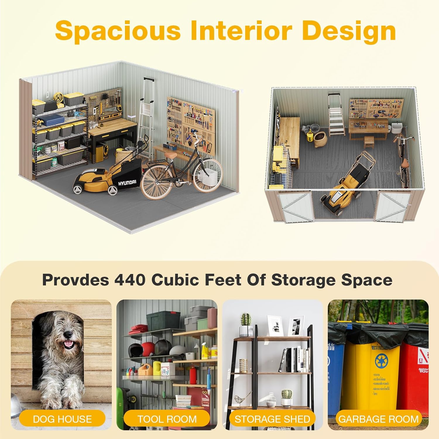 - Durable Galvanized Steel Construction: Expertly crafted with thick galvanized steel panels and reinforced structural engineering, this metal shed delivers exceptional longevity and rust resistance. The anti-rust powder-coated surface withstands harsh weather, ensuring years of reliable outdoor storage without corrosion, making it a premier storage shed for homeowners.