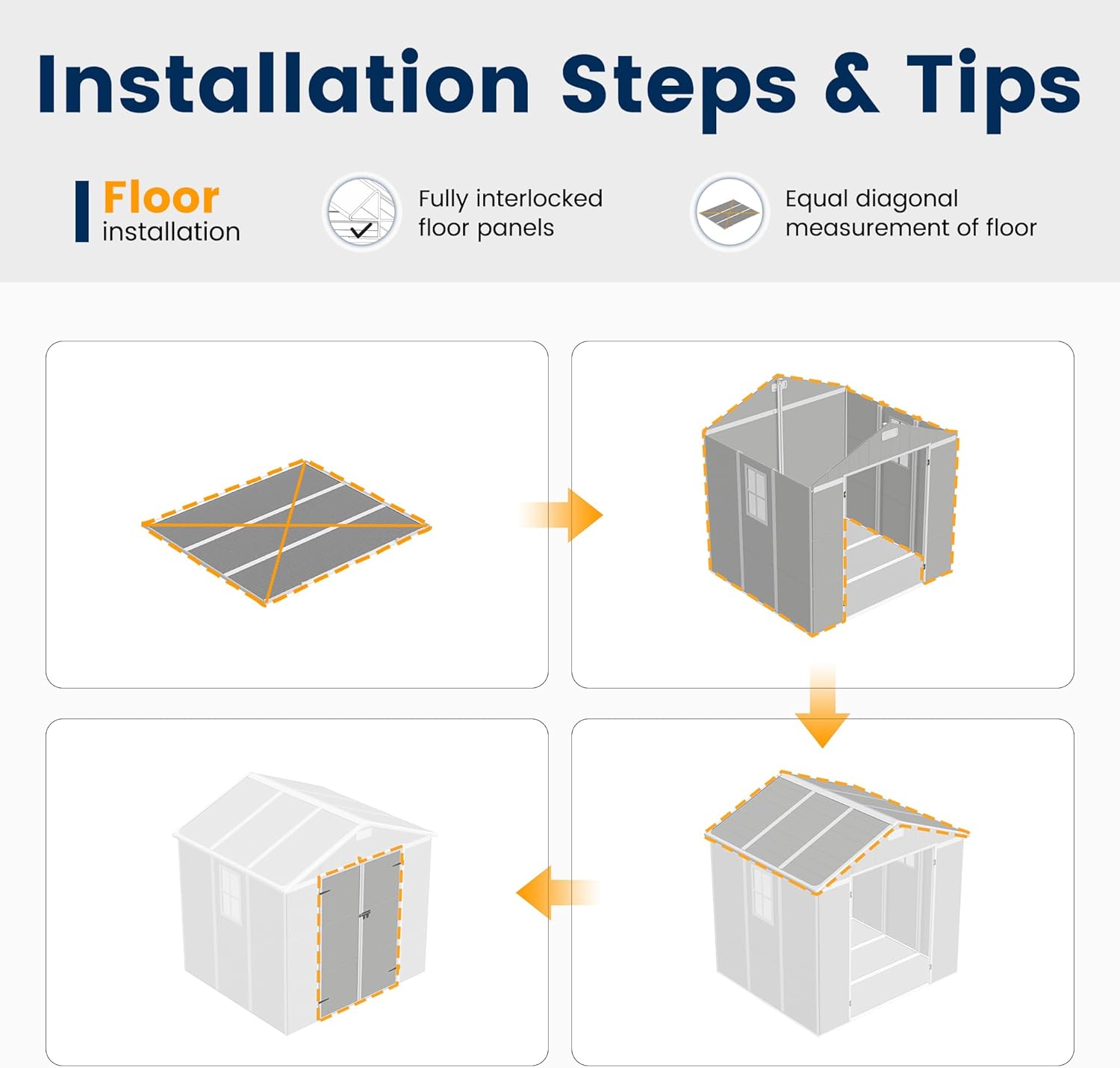 - HIGH-QUALITY MATERIAL: This outdoor storage shed is made of 12mm high-quality polypropylene resin plastic. Our resin storage shed has good characteristics such as recyclability, corrosion resistance, waterproofing, and rust prevention