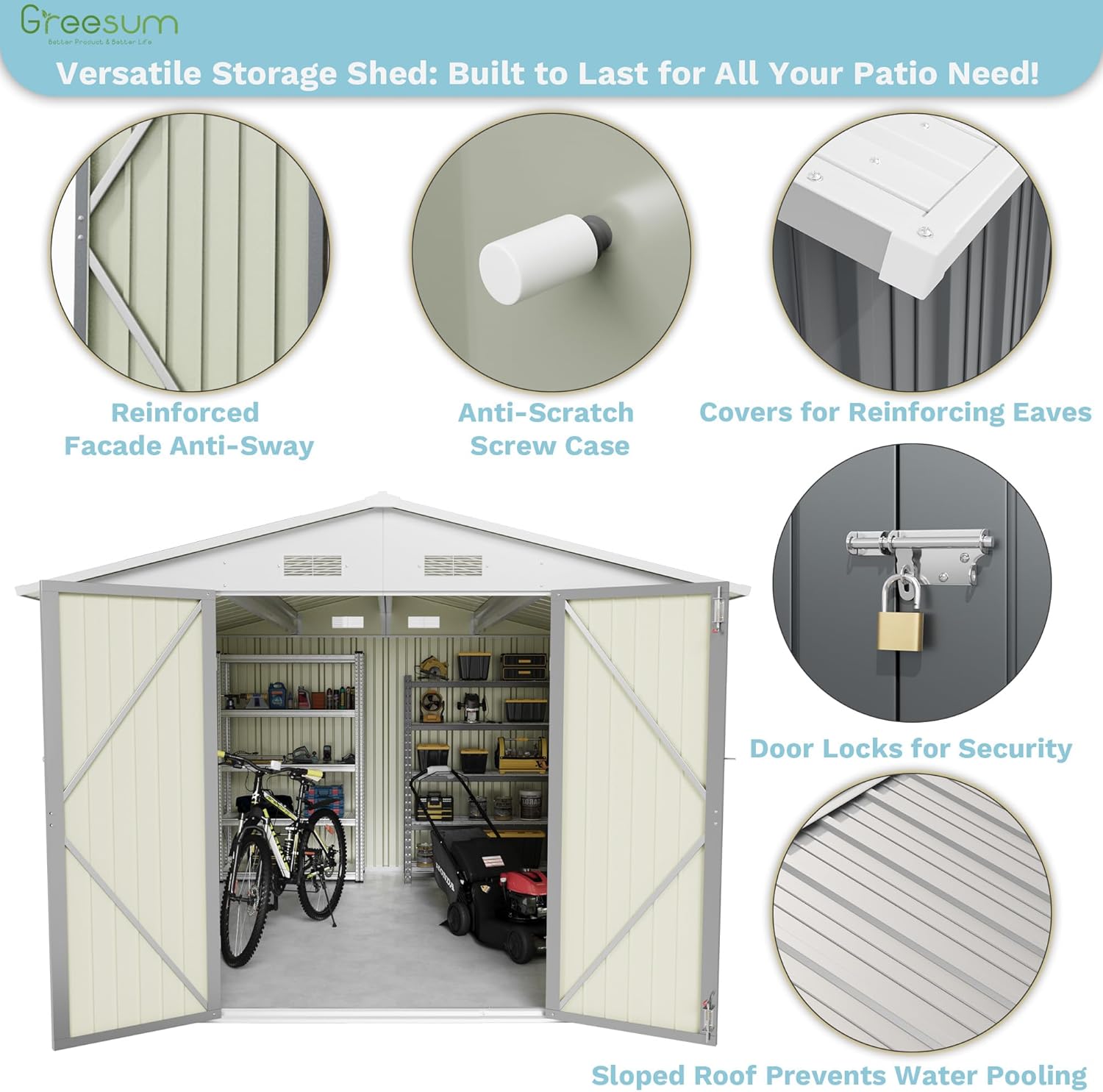 - Flexible Storage Space – Verify Size Before Purchase: Ample room to organize garden tools, bikes, and more! Maximize your storage potential—please check the detailed size guide to ensure perfect fit for your needs.