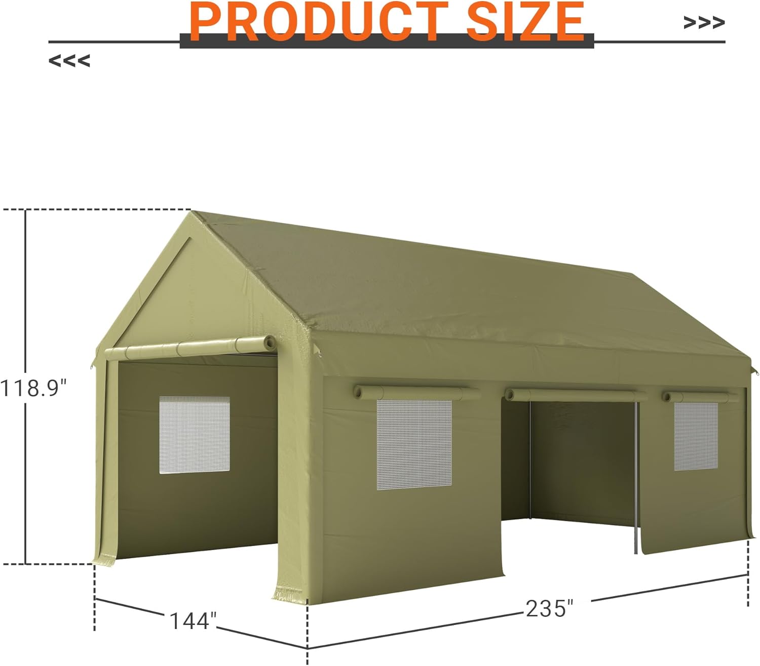 - 【Large Portable Garage】This 12x20 feet heavy duty carport is suitable for trucks, SUVs, RVs and tractors. Lightweight and durable, it is flexible to relocate to your backyard, farm or job site, providing plenty of space for your vehicles, boats, cargo and more. Removable sidewalls and doors allow for a variety of your needs. Ideal not only for vehicle storage, but also great for parties, trade shows, outdoor events, weddings, storage sheds and more.