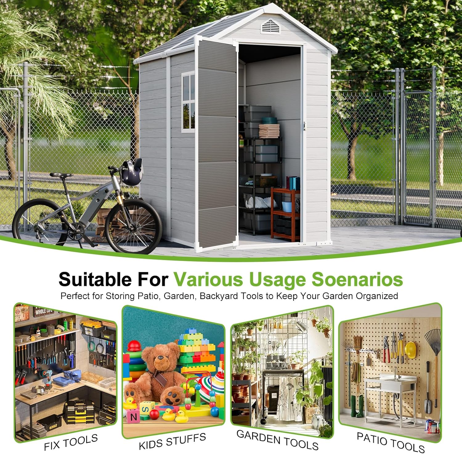 4x6 FT Small Plastic Shed Resin Outdoor Storage with Floor Included, Waterproof Mini Garden Tool Sheds Cabinet