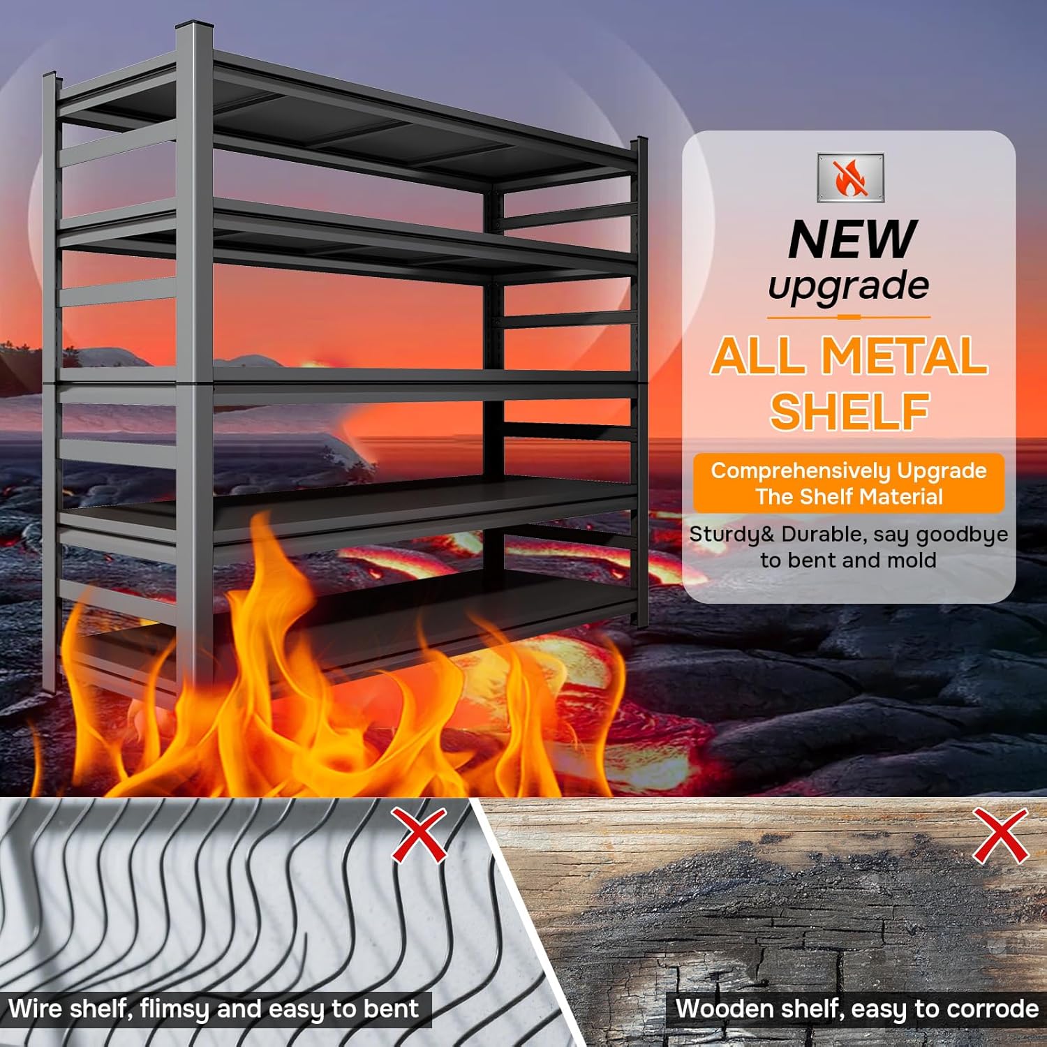 Metal Garage Shelving,48" Wx72 H Heavy Duty Storage Shelves-Easy to Assemble,5 Tier Adjustable 3600 lbs Capacity Metal Storage Utility Rack Shelf Unit for Warehouse Pantry Office Kitchen, Black