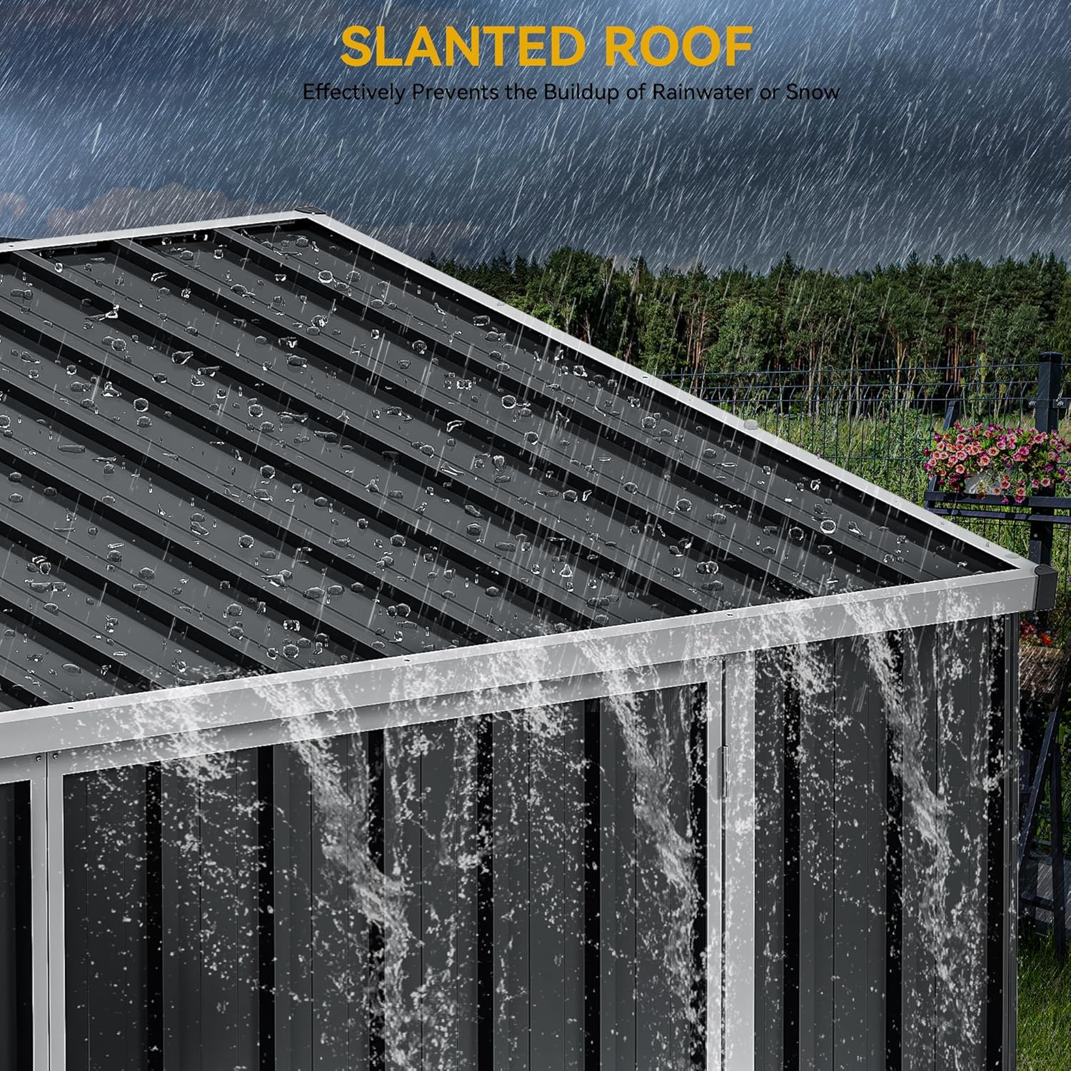 - Enhanced Materials: Made of galvanized steel, the outdoor storage unit resists corrosion and wind damage for lasting stability; Anti-collision rubber pads at each corner boost safety by minimizing shocks during collisions